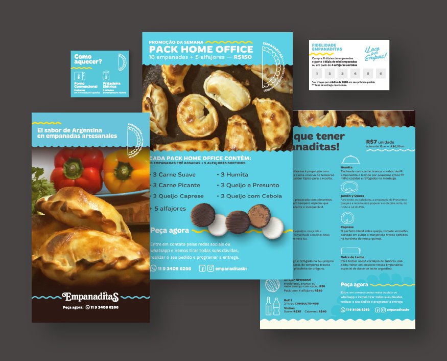 Desenvolvi a identidade visual completa da Empanaditas, uma produtora de empanadas artesanais argentinas.